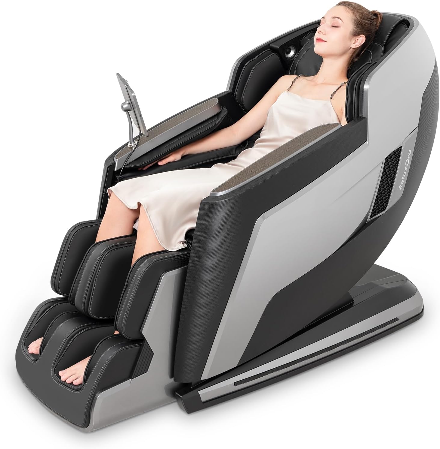 Mani robotiche per massaggio 4D : la poltrona massaggiante è dotata di mani robotiche avanzate per massaggio 4D, con rulli che si muovono su e giù, da un lato all’altro, interno e ad esterno, con intensità e velocità Regolabili. Questo sistema riproduce le tecniche di un terapista professionista, offrendo un massaggio più ampio, profondo e ritmicamente più preciso rispetto ai rulli convenzionali. È progettato per alleviare efficacemente la fatica e la tensione, offrendo un’esperienza davvero coinvolgente.